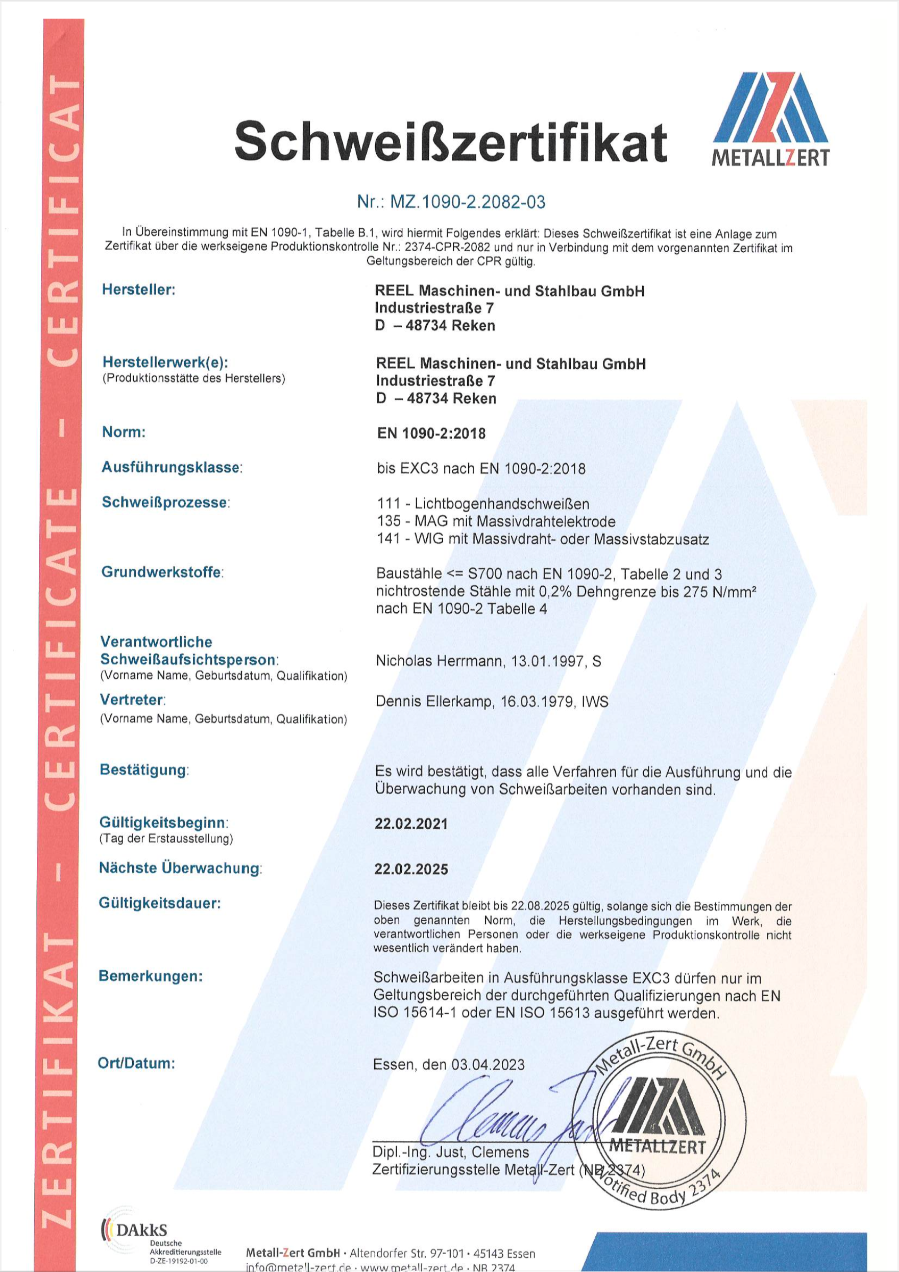 Persönlich haftende Gesellschafterin: REEL Maschinen und Stahlbau GmbH